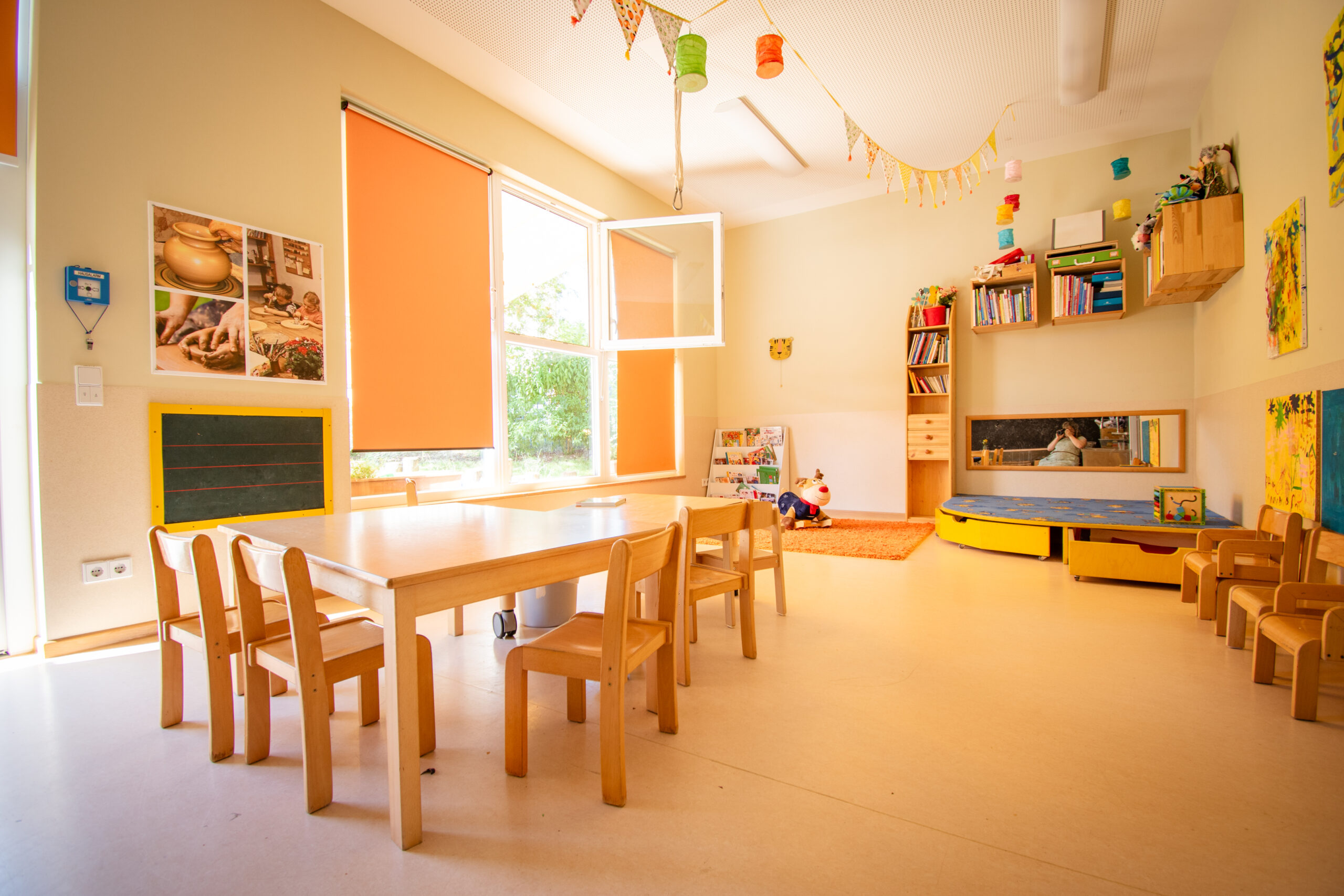 Igelzimmer Im Igelzimmer finden die Kinder eine große Kletterburg vor, die unter anderem zu Rollenspielen einlädt oder als Ruhe-Ecke dient. Verschiedene Puzzle und Spiele stehen den Kindern zur Förderung ihrer mathematischen Fähigkeiten zur Verfügung. Biberbau Der Biberbau wird von den Kindern als Lesebereich genutzt. Ebenso haben sie dort die Möglichkeit, sich beim Hören musischer Erzählungen zu entspannen. Kreativbereich In diesem experimentieren, malen und basteln die Kinder. Sie lernen den Umgang mit verschiedenen Werkzeugen und Materialien kennen. Einzelne Werke werden im Anschluss gern in der Forscherecke erprobt. Diese regt vor allem zur Auseinandersetzung mit mathematischen und physikalischen Prozessen an. Holzwerkstatt Zum Kreieren individueller Kunstwerke nutzen die Kinder auch gern die Holzwerkstatt, in der sie die Bearbeitung unterschiedlicher hölzerner Gegenstände kennenlernen. Käferzimmer Käfer- und Spatzenzimmer sind miteinander verbundene Räume, die vielfältige Materialien für unterschiedliche Angebote bereithalten. Die geräumige Bauecke biete ähnlich viel Platz wie die abgeschirmte Puppenecke zur Umsetzung individueller Rollenspiele.
